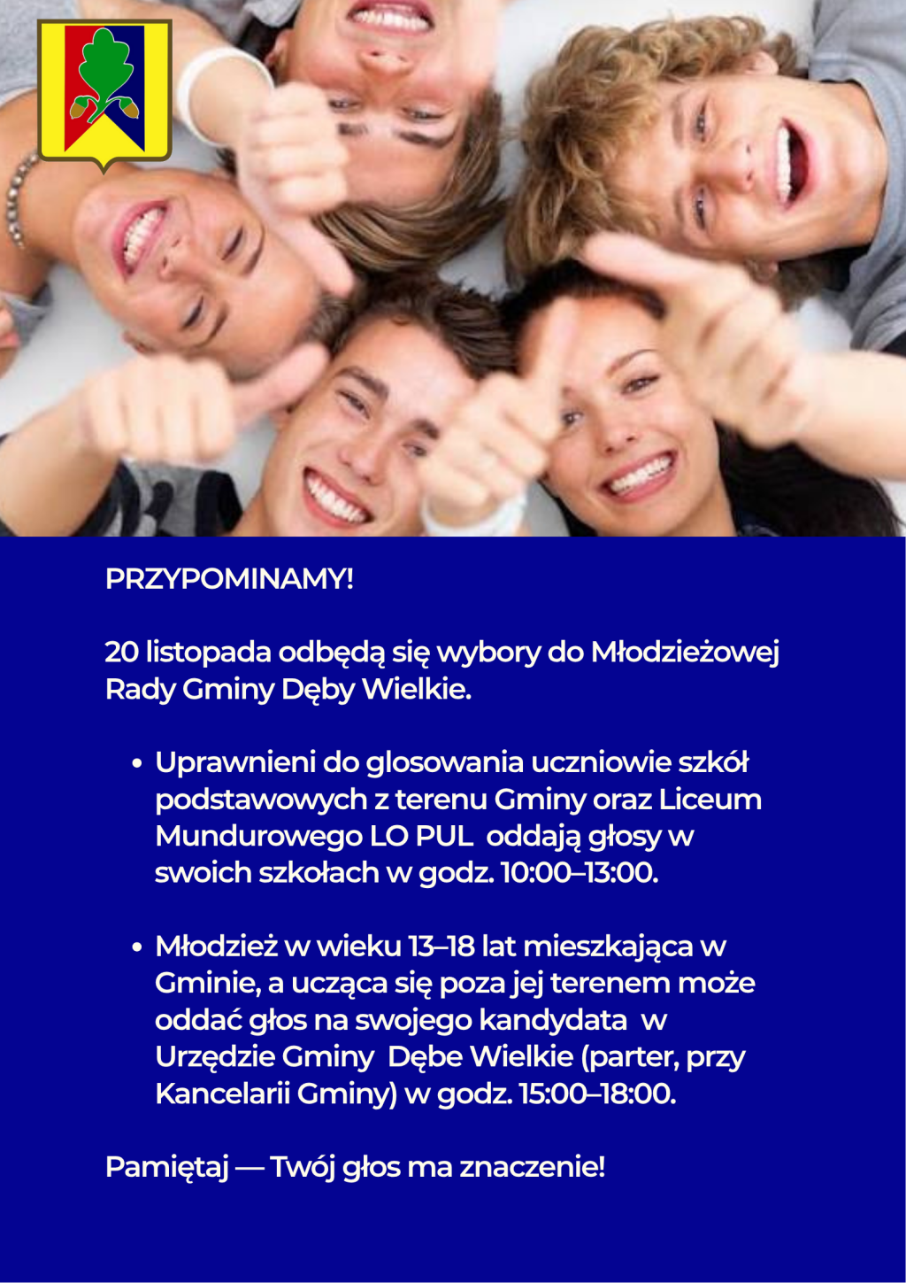 20 listopada odbędą się wybory do Młodzieżowej Rady Gminy Dęby Wielkie.