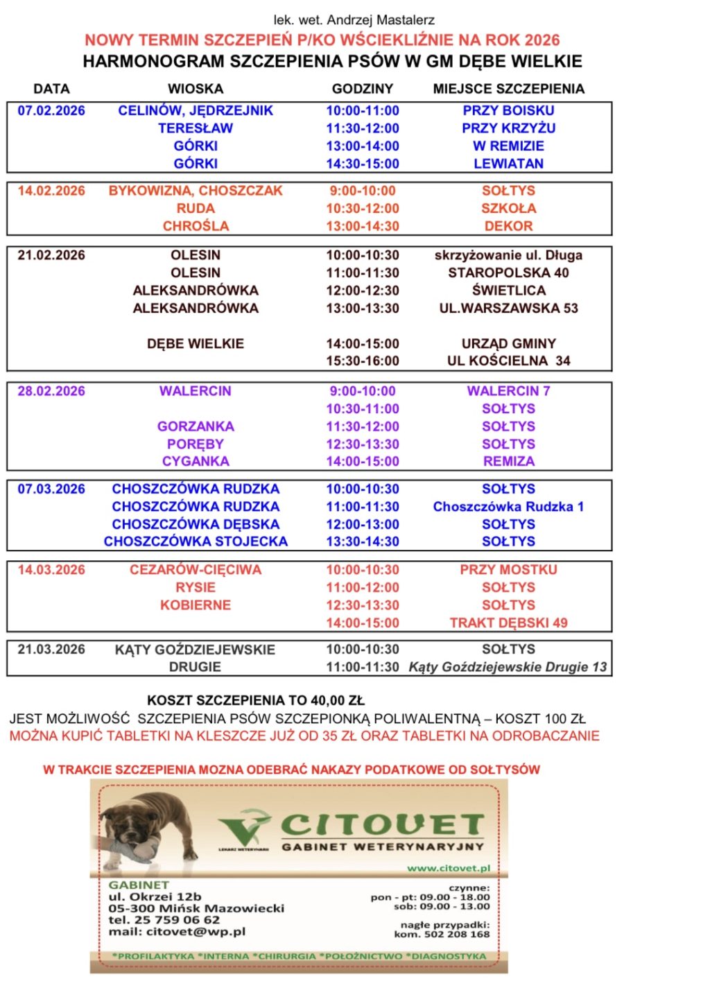 Aktualizacja harmonogramu szczepień