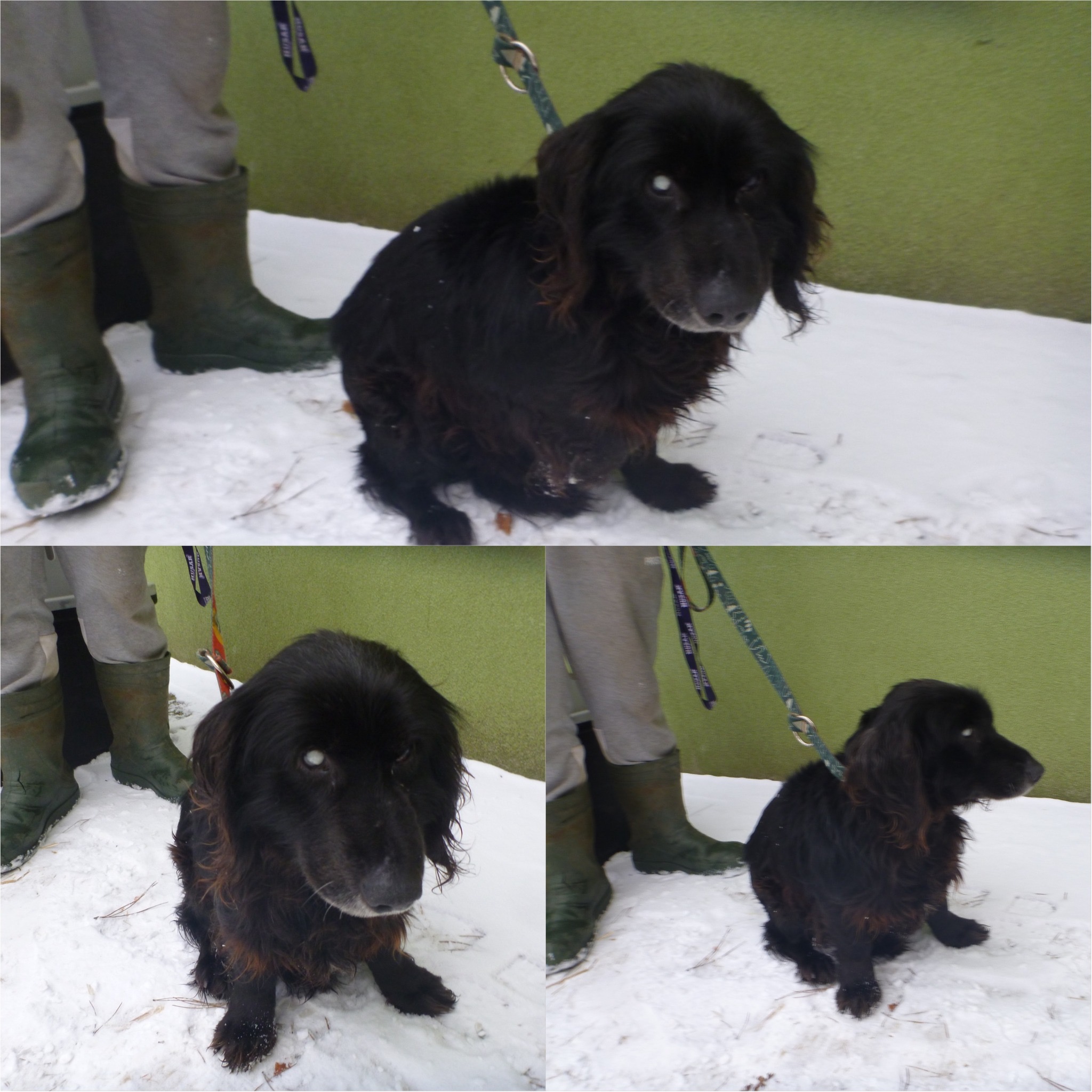 Pies, ok 10 lat, mix, mały, czarny, odłowiony w Dębem Wielkim ul. Pedagogów, przyjęty do Schroniska w dniu 08.01.2026 r. do Schroniska dla Zwierząt Małe Boże. Adres Schroniska: Małe Boże 7a, gmina Stromiec.