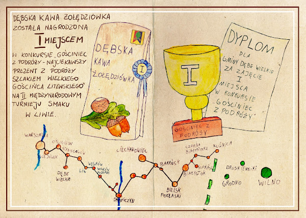 W tegorocznym turnieju smaków zgłoszona przez gminę Dębe Wielkie NALEWKA ŻÓŁĘDZIOWA Jolanty Pitury z Dębego Wielkiego zajęła III miejsce w konkursie „Gościniec z podróży” – najlepszy regionalny podarunek kulinarny z podróży szlakiem Wielkiego Gościńca Litewskiego Warszawa – Wilno. Nagrodę osobiście odebrał Wójt Gminy Dębe Wielkie Krzysztof Kalinowski, któremu jury również pogratulowało zaangażowania gminy Dębe Wielkie w rozwój oraz promocję Szlaku Wielkiego Gościńca Litewskiego.