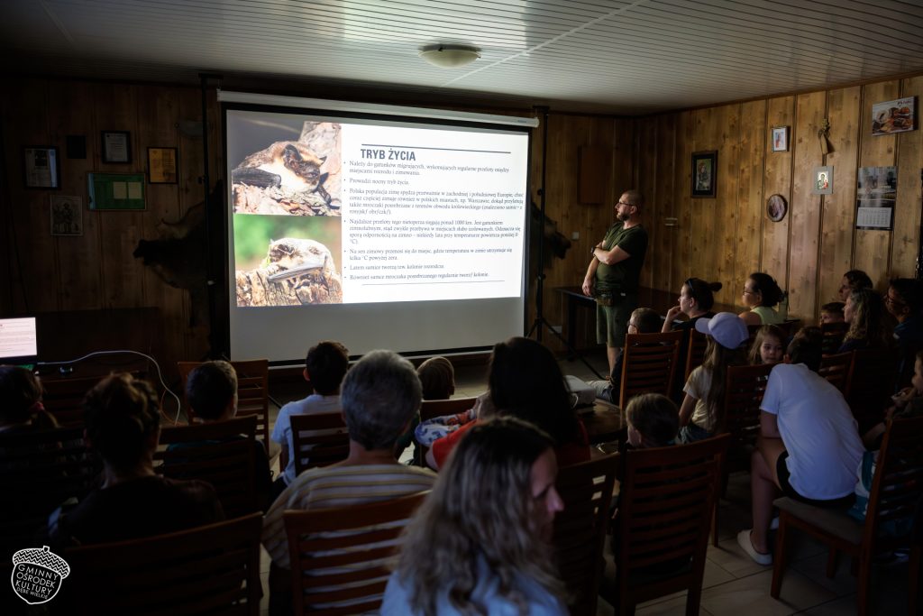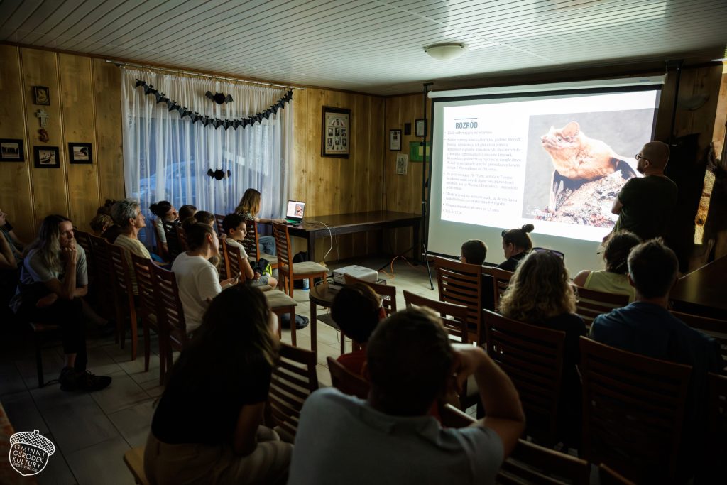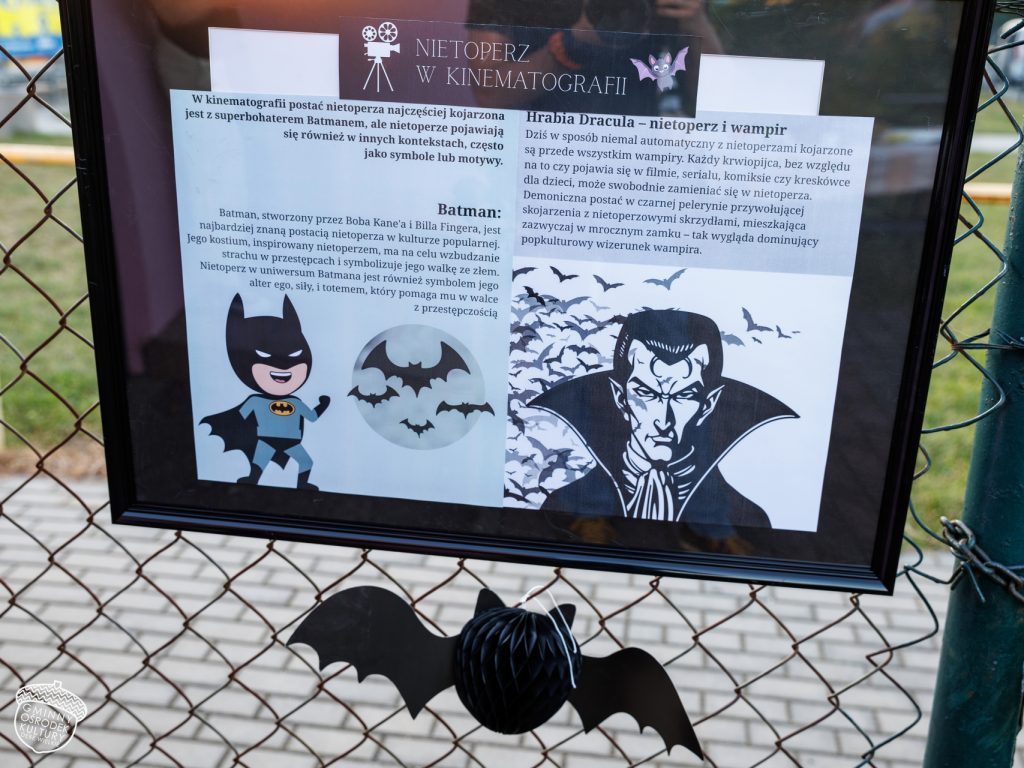 Rozpoczęliśmy od edukacyjnej prelekcji, która przybliżyła nam świat nietoperzy – ich zwyczaje, rolę w przyrodzie i tajemnice, które skrywają w nocnych przestworzach. Było też twórczo i rodzinnie: dzieci (i nie tylko!) ozdabiały szkatułki pełne wyobraźni, powstawały nietoperzowe tatuaże, a płot przy świetlicy zamienił się w galerię plenerową – wystawę „Nietoperze w kulturze”. 🎨🖼️