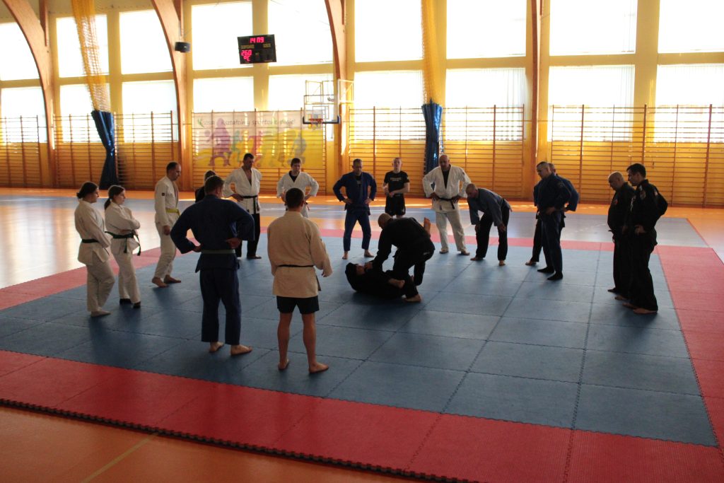 części seminarium zgłębiać techniki walki w parterze z Łukaszem Budnym (4 dan).