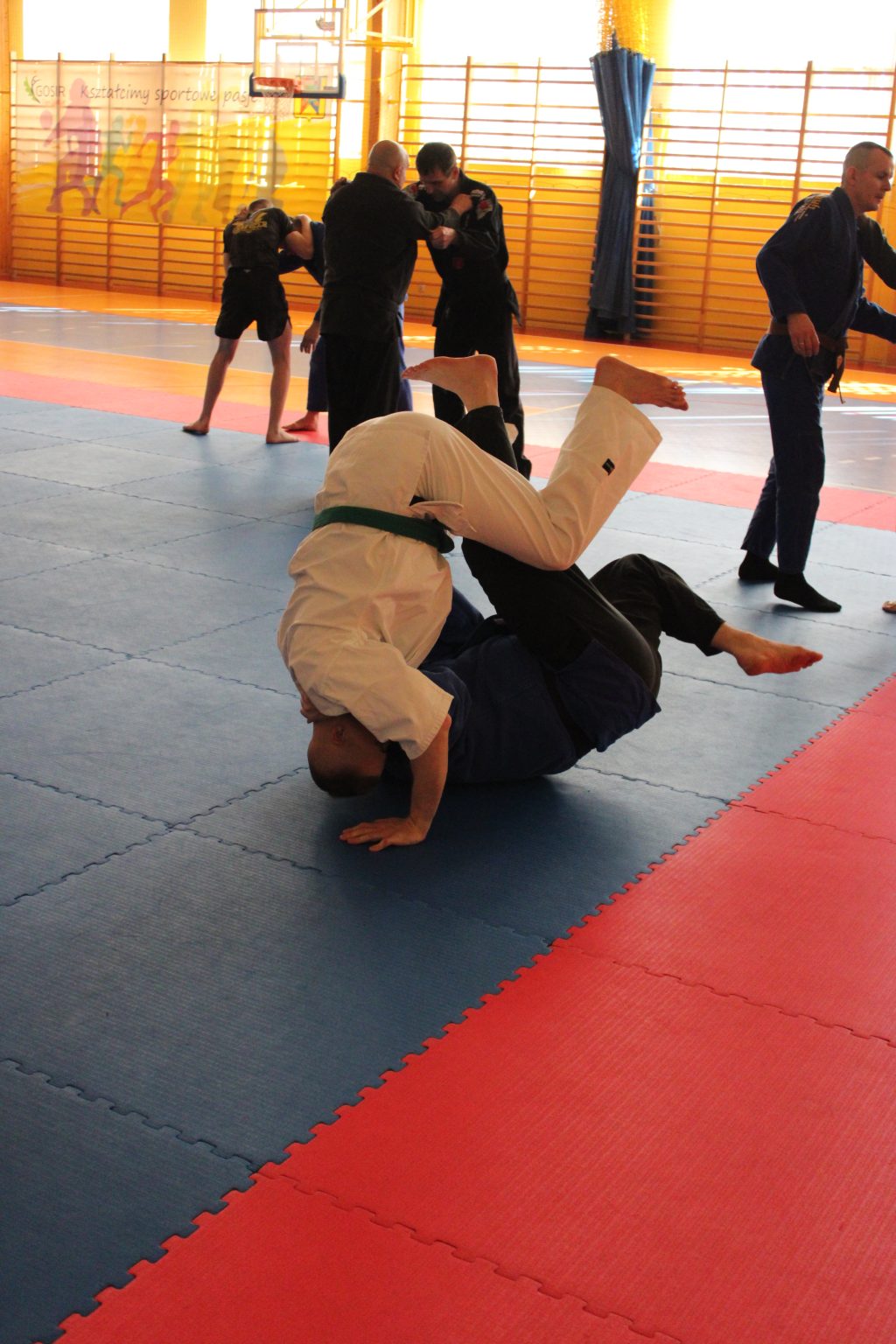uczestnicy doskonalili rzuty i obalenia pod okiem Adama Żukowskiego (4 dan), by w dalszej